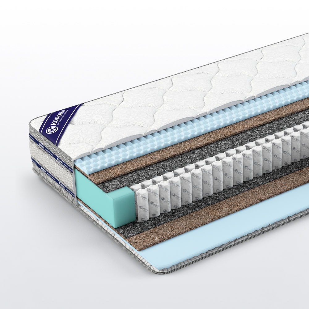 <comment>Сначала показался жестким, но быстро привыкли, теперь просыпаемся без боли в позвоночнике. Мягкая сторона нам не подошла, болела шея после сна. Связываем это с тем, что спим на ортопедических подушках, которые жестче матраса: получается, что тело проваливается в матрас, а голова нет.  Оптимальное соотношение цены и качества.</comment>