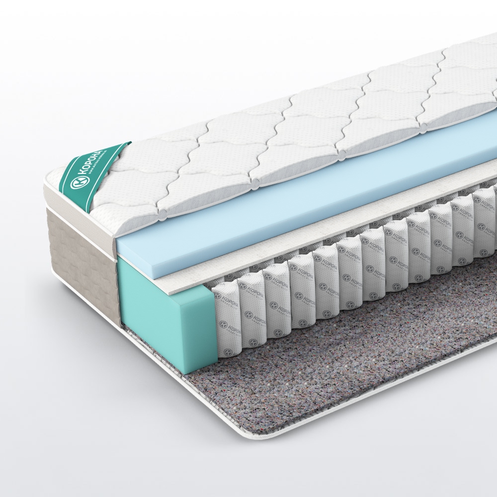Высокий матрас одностороннего типа повышенной комфортности, на основе блока независимых пружин TFK 500. Топпер в составе модели применяется в качестве мягкого наполнителя и улучшает воздухопроницаемость спального места. Комбинация пенополиуретана и жесткого наполнителя «Bicotton» помогает равномерно распределять и выдерживать высокие весовые нагрузки. Главная особенность модели — пышный чехол, простеганный на объемном слое синтепона и пенополиуретана. Нижняя сторона матраса выполнена из жаккарда М220, а верхняя — из комфортного дышащего трикотажа. Благодаря такой конструкции его не нужно переворачивать, что повышает удобство его эксплуатации. Короб по периметру из пены «Armoflex».