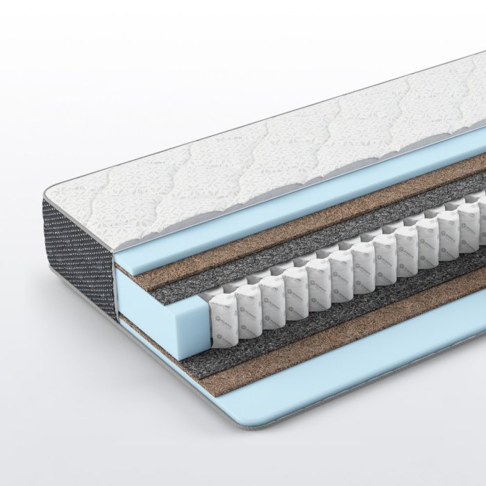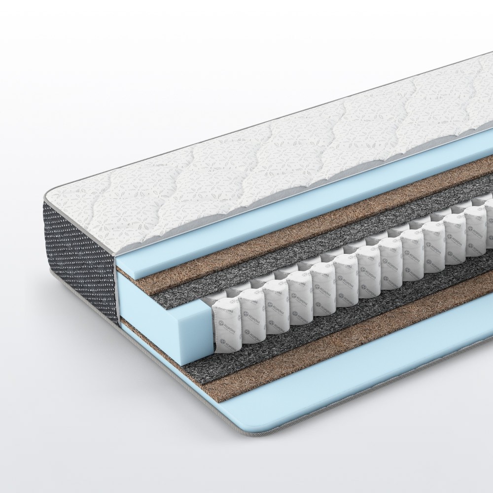 Кокосовая койра в сочетании с эластичной пеной и термовойлоком обеспечит необходимую поддержку позвоночника, при этом сохранит достаточный уровень комфорта и повышенную жесткость спального места практически для любого пользователя весом до 120 кг.