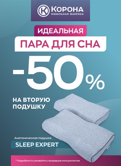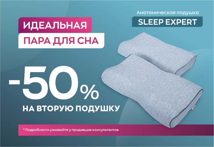 —Идеальная пара для сна. Скидка 50% на вторую подушку «Sleep Expert».